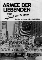 In 1971 he achieved notoriety throughout Germany with his film It’s not the Homosexual Who Is Perverse, but the Situation in Which He Lives. The self-critical film was crucial to the founding of the new German gay movement; over 50 political gay groups sprang up in the wake of this film’s showing in the cities and towns of Germany. His film Army of Lovers documented the American gay and lesbian movement from the 1950’s to 1976. He documented the New York underground theater and film scene with several films including Underground and Emigrants (1975) and Tally Brown, New York (1977).